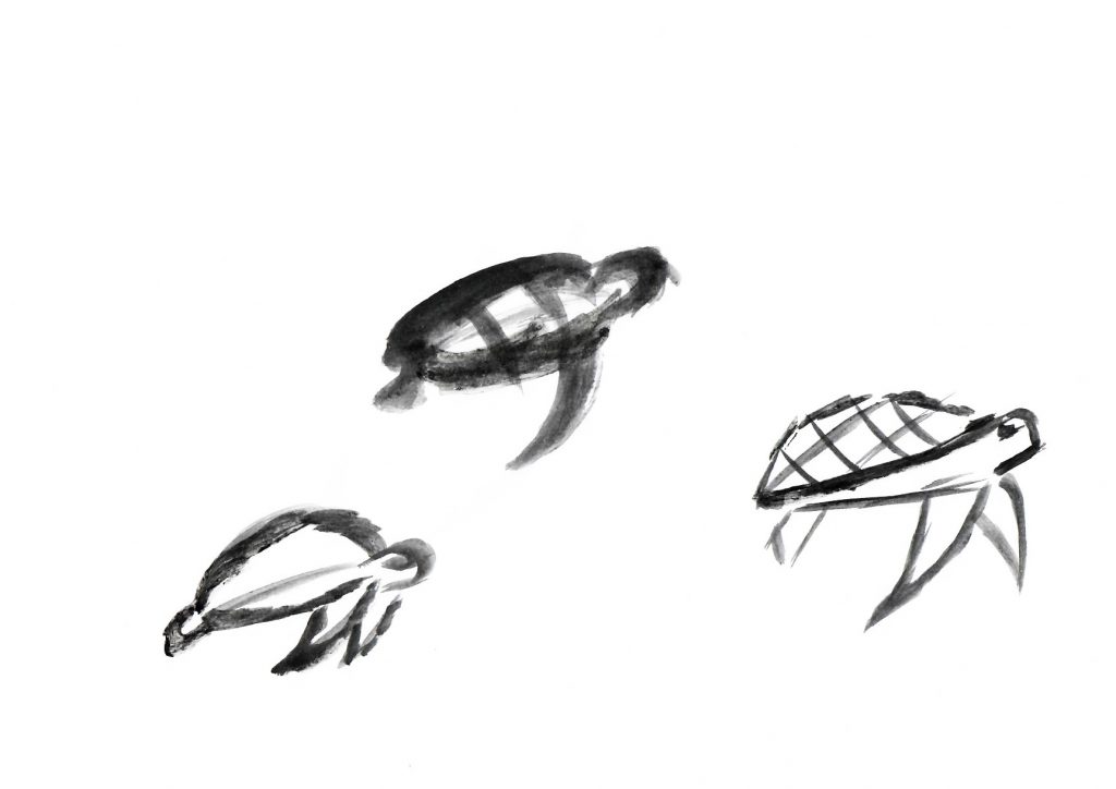 Die Aufgabe des Illustrationskurses war es aus einer detaillierten realistischen Zeichnung ein modernes Logo zu entwickeln. Mein Motiv war eine Wasserschildkröte.